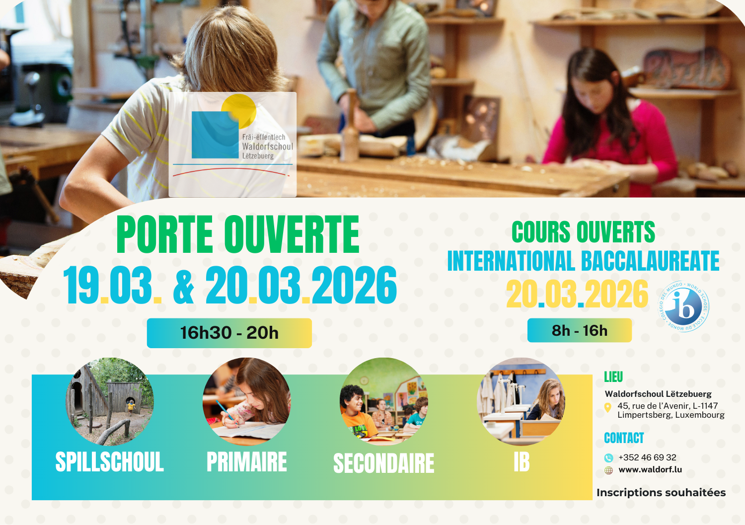 Pour plus de 40 ans, l’École Waldorf de Luxembourg est un lieu où les enfants peuvent grandir, apprendre et se développer — dès l’âge de 3 ans jusqu’à la fin de leur scolarité.